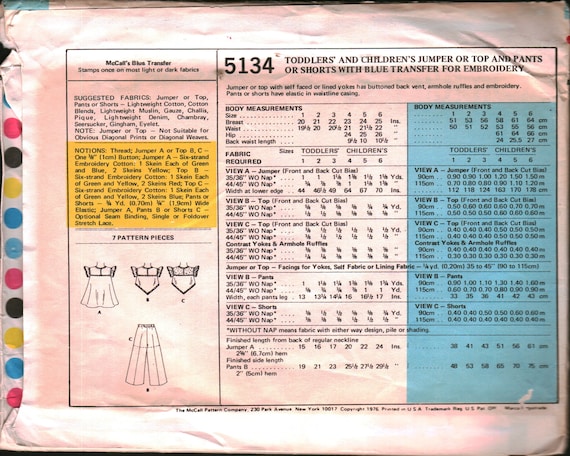 5134 Vintage Mccalls Sewing Pattern Toddlers Jumper Top Etsy